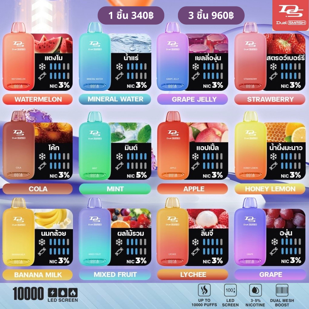 Dual Smash 10000 Puffs พอดใช้แล้วทิ้ง ชิ้นละ 340฿ จัดส่งทั่วประเทศไทย!